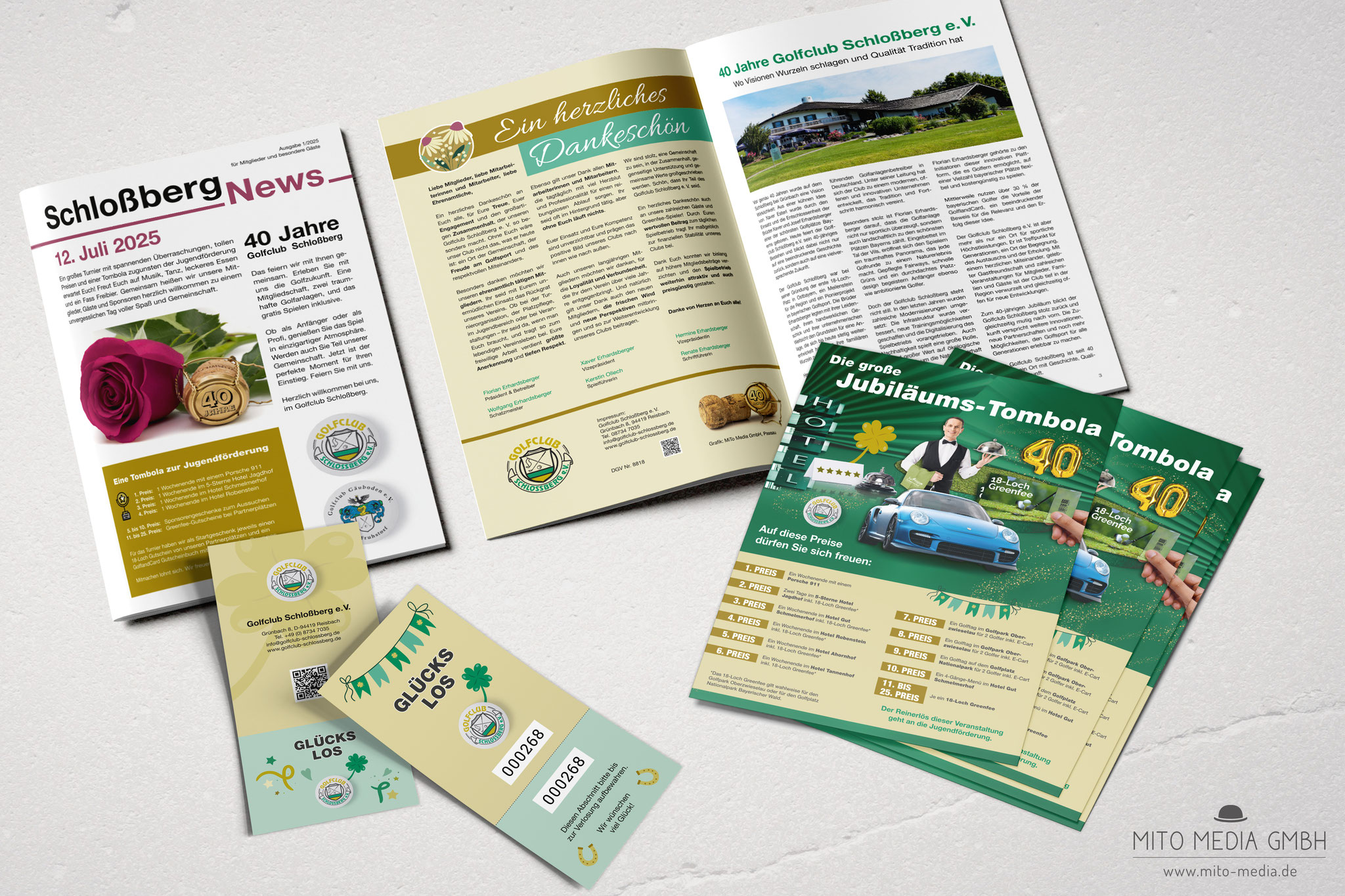 Reisbach und Fruhstorf - Projekte: Rollup, Getränkedosen, Jubiläums-Magazin, Lose, Tombola-Flyer
